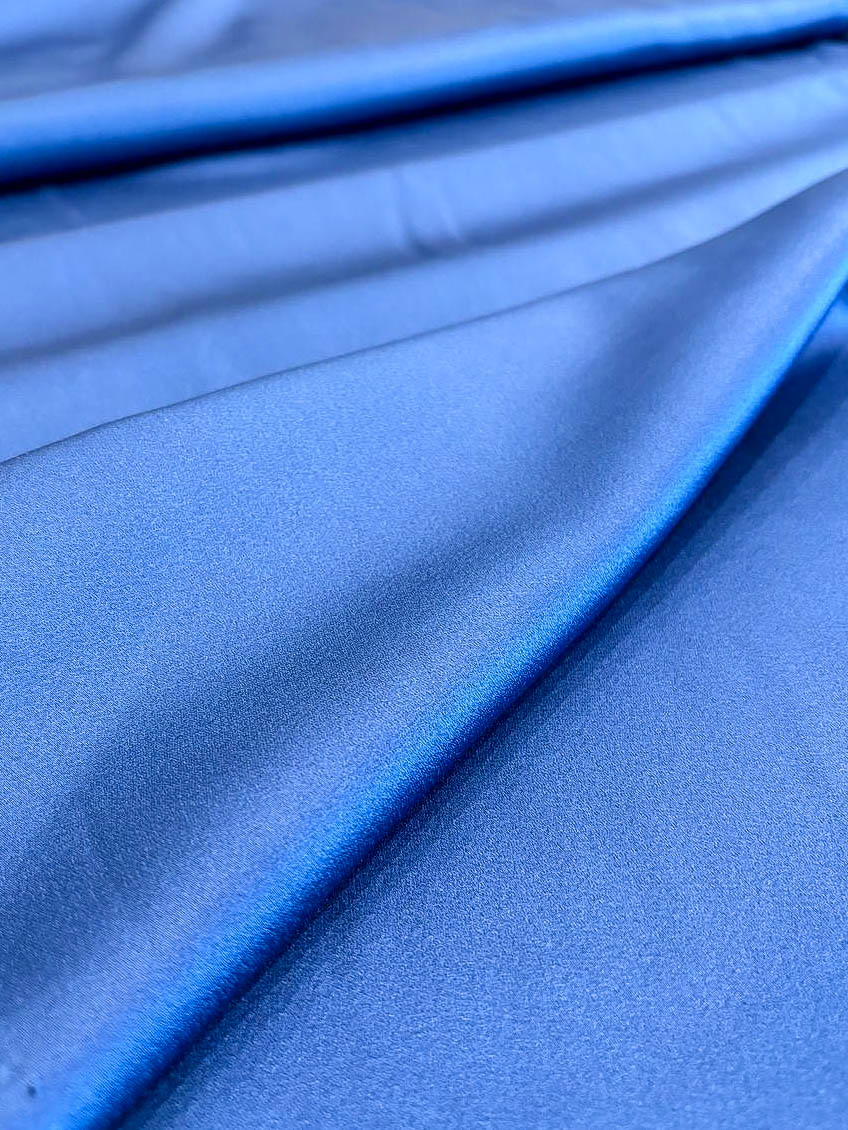 Двухстороннее кади Сток Armani Состав: вискоза, ацетат Ширина: 136 см Цвет: темно-синий Описание: не сминается; одна сторона матовая, другая атласная; подойдет на костюмы расслабленного кроя, платья по косой, блузы