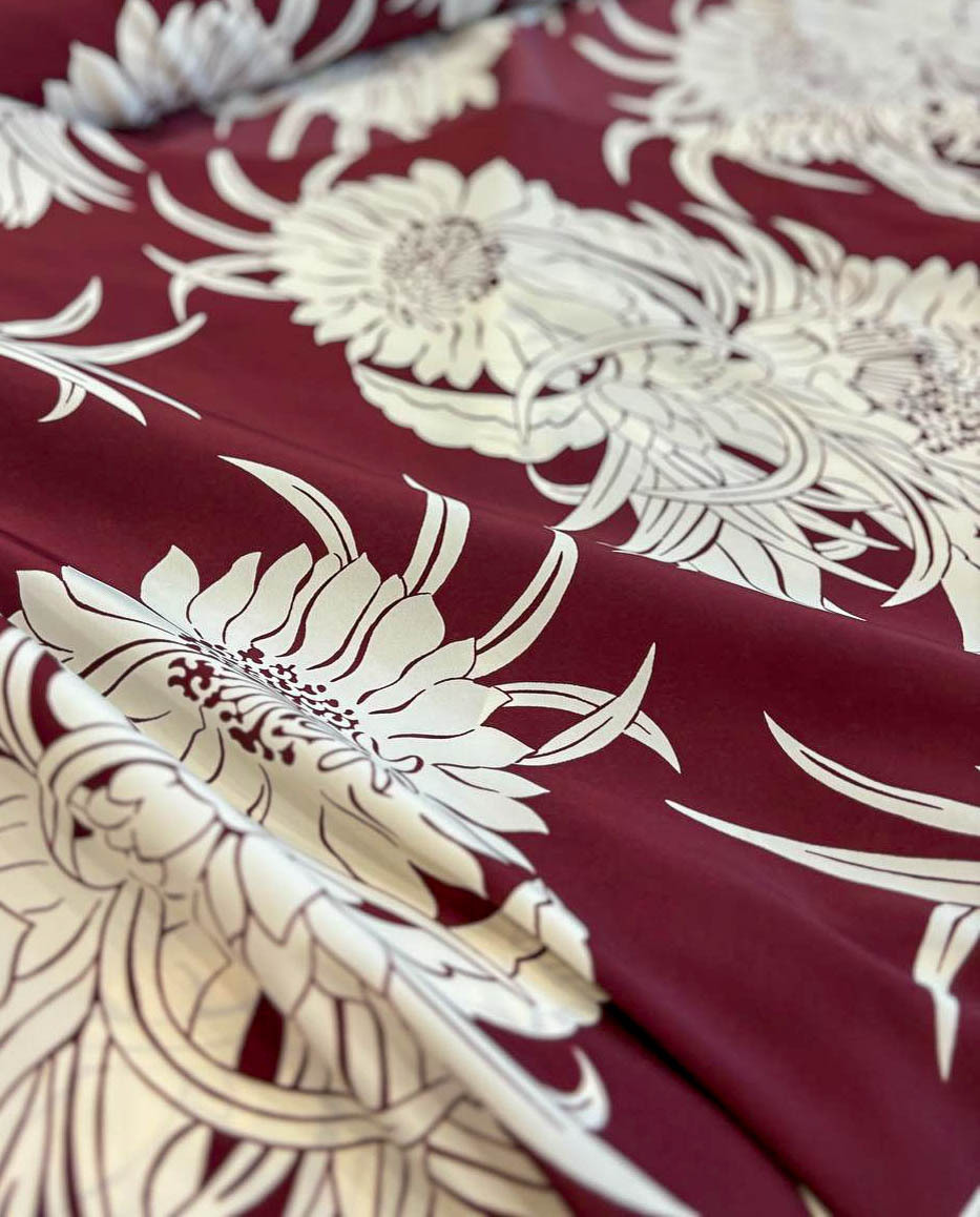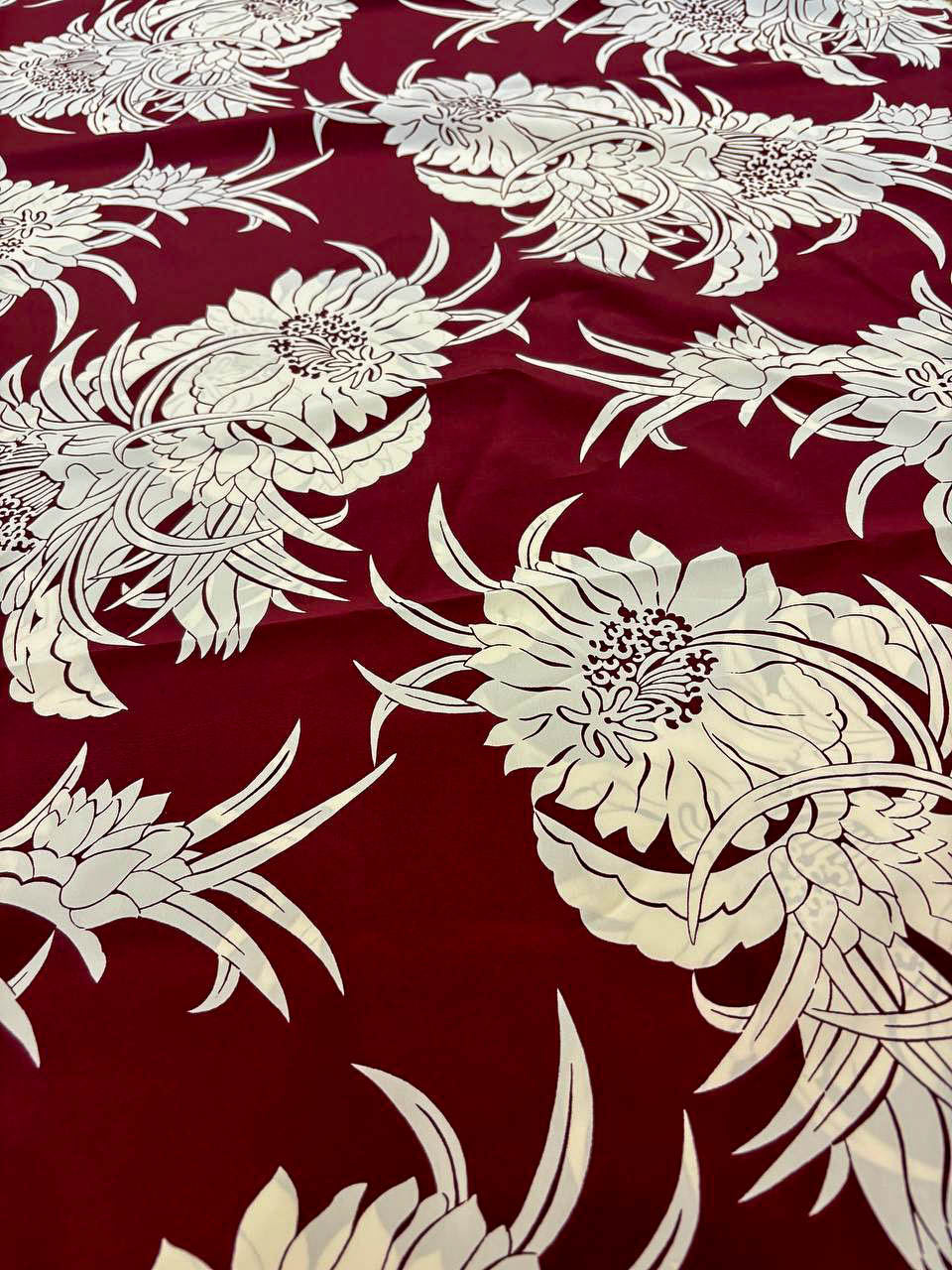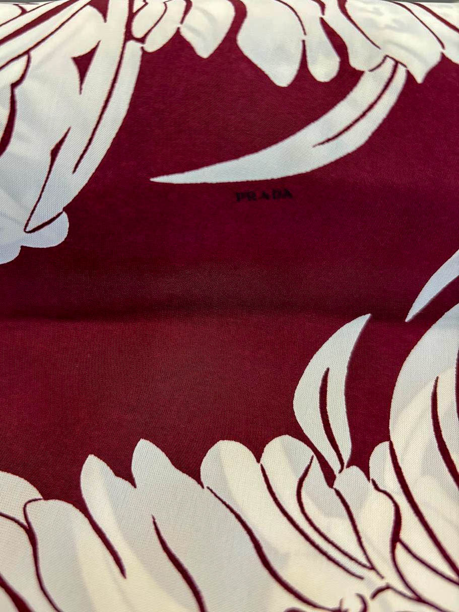 Вискоза Сток Prada Состав: вискоза 100% Ширина: 142 см Цвет: бордовый в сочетании с молочным Описание: тактильно прохладная, струится, хорошо драпируется, сминаемость низкая; подойдет на костюмы расслабленного кроя, платья по косой, блузы