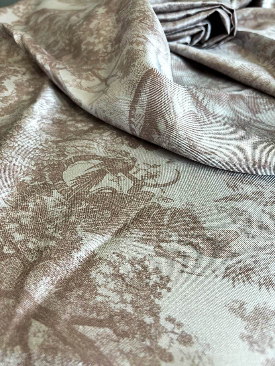 Твиловый шелк Christian Dior Состав: шелк 100% Ширина: 155 см Описание: имеет благородный лоск на поверхности, пластичная; лого выполнено в виде голограммы и заметно при попадании света на него; хорошо драпируется; подойдет на блузы, рубашки, костюмы расслабленного силуэта